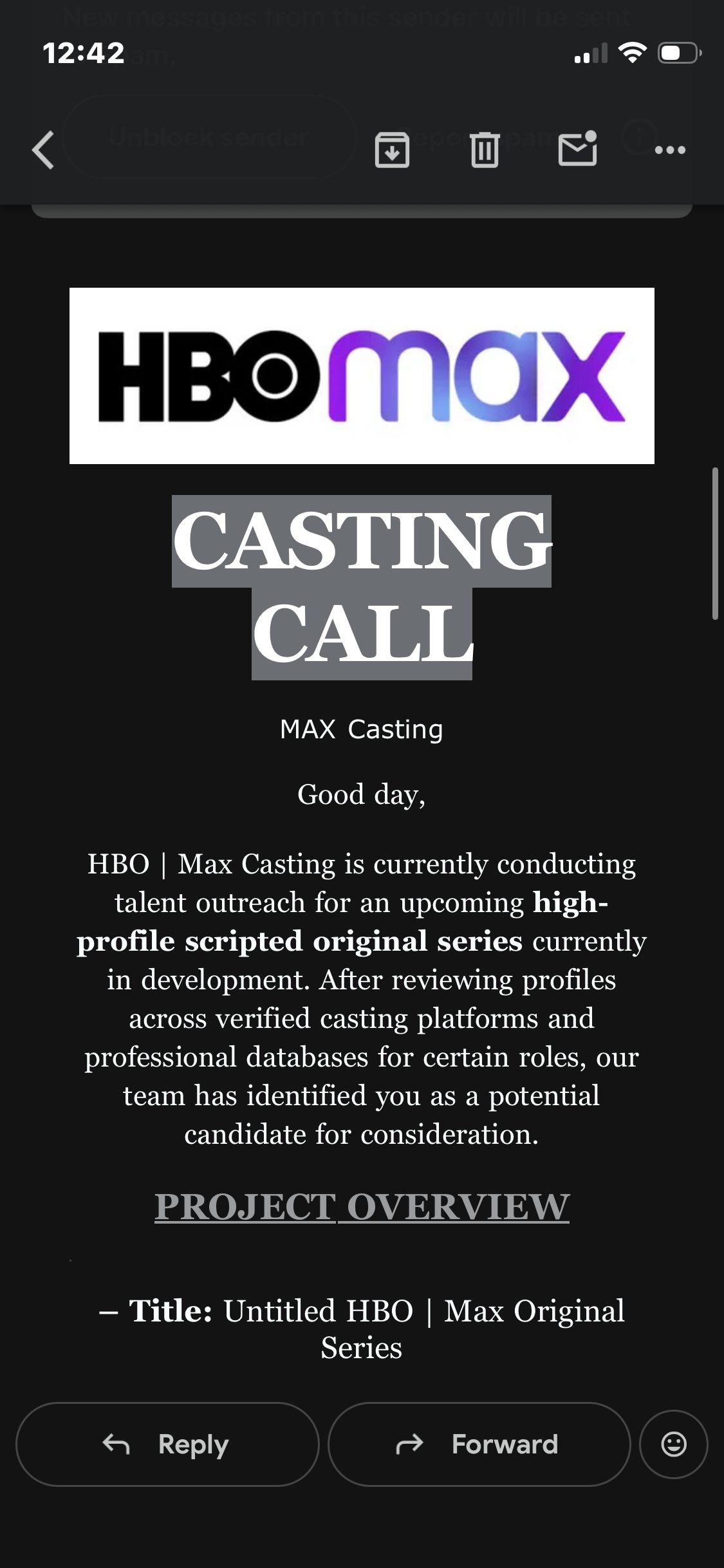 Just like the title of this blog, Scams are real and they hurt. I’m tired of being scammed as an actor. You really have to watch out and this is my story: The past couple of weeks, I was lead to believe that I was conversing and auditioning for a real casting director of HBO MAX. Sent a stellar audition and even signed off on a role I was offered with a Zoom meeting all set up for this upcoming week. Now, I did my research and by the way this was from Backstage, I did my research and I was already skeptical from the beginning as I have been burnt from roles and opportunities in the past. It’s kind of like AI - you don’t know what’s real anymore and it hurts. Am I used to this by now and being scammed….yes to the point now where I don’t trust anyone. But I also feel like if I don’t take a chance, I could miss out on my big break. It’s heartbreaking and yes this is a setback. I am very fragile at this point. I try to research as much as I can with companies and making sure they’re legit, but sometimes that’s not enough.